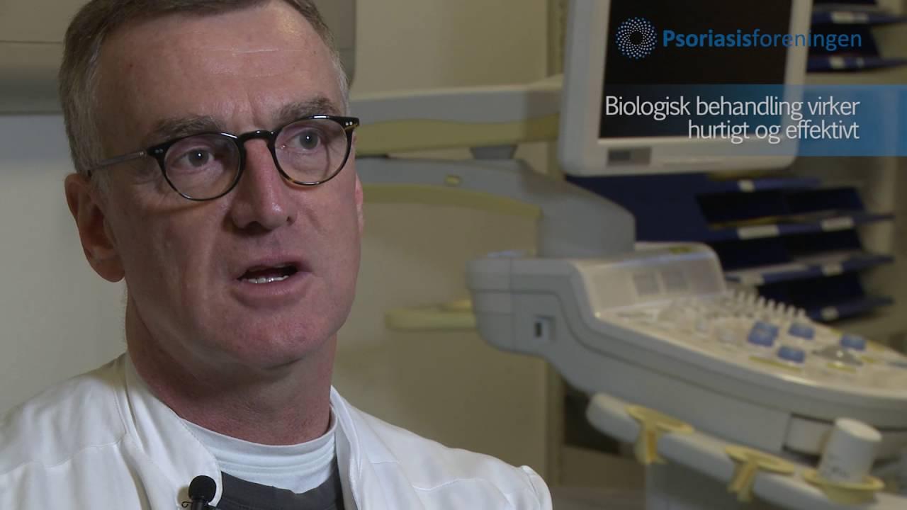 Psoriasisgigt er en betændelsestilstand i leddene, som rammer særligt i fødder, knæ og yderste fingerled, men den kan også kan forekomme i andre af kroppens led. Hævede led, længerevarende smerter og hyppige ledsmerter om morgenen kan være tegn på psoriasisgigt. Har du mistanke om psoriasisgigt, skal du henvises til reumatologisk afdeling på sygehuset - henvisningen får du hos din praktiserende læge. Biologisk behandling gives til patienter med psoriasisgigt. Behandlingen foregår ved at sprøjte antistoffer direkte i leddene. Antistofferne dæmper betændelsestilstanden og dermed smerterne, og behandlingen har en hurtig og langtidsvirkende effekt.